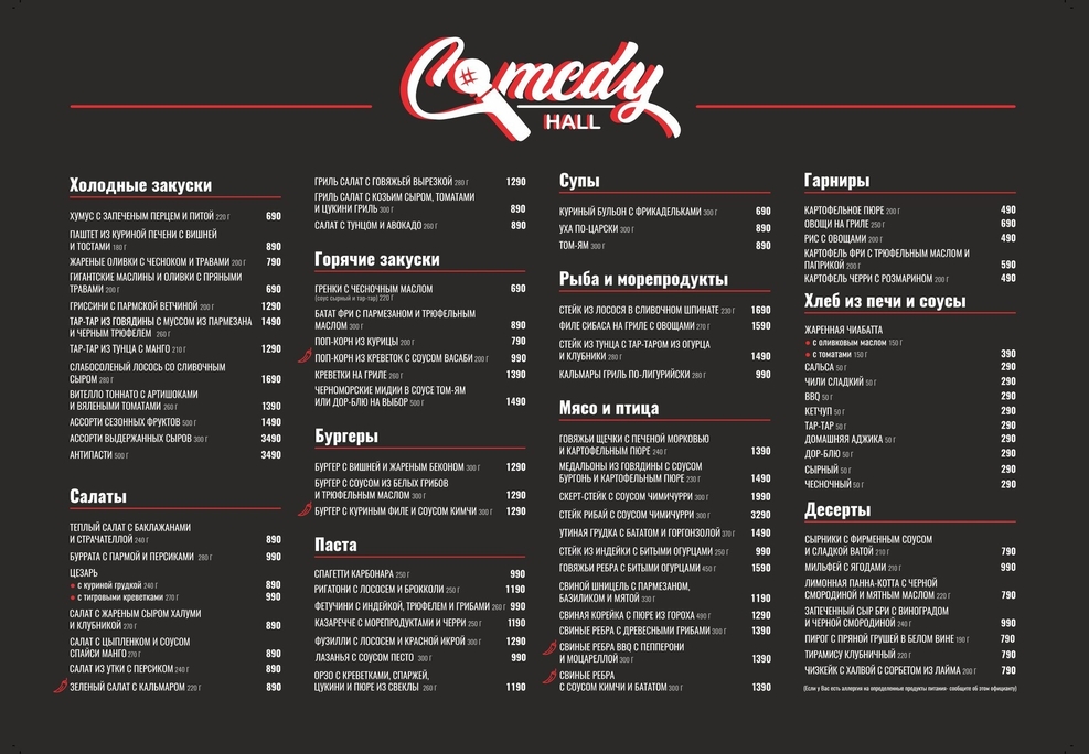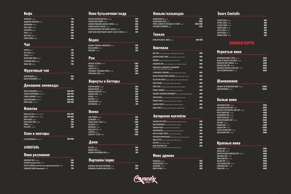 Комедийный клуб, где выступают топовые комики (StandUp на ТНТ, Comedy Club, Comedy Баттл) а на разогреве всегда играют лучшие Московские кавер и джаз бэнды, что гарантирует для вас яркий вечер и великолепные несколько часов в нашем новом клубе – Comedy Hall